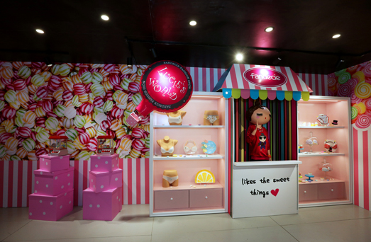 几乎所有少女对色彩缤纷的糖果毫无抵抗力,芬狄诗为喜爱甜品的女生塑造了一个甜蜜的糖果屋。彩虹糖,甜甜圈,还有可爱迷人的Lucie娃娃。在这个温暖甜美的空间,做一个纯真简单的梦,满目都是粉嫩的青春,简直一眼拯救少女心!