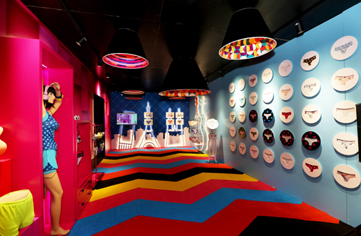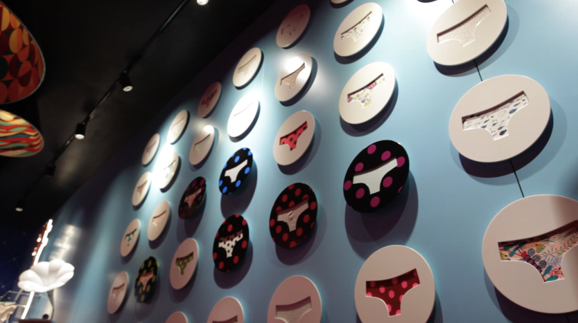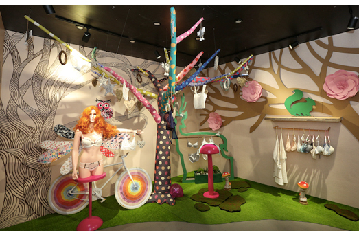 切换到艺术气氛浓郁波普屋,夸张动感的波点、各色印花、撞色、几何图形等经典的设计元素,都在内衣设计上完美呈现,以玩乐的时尚态度,轻松玩转多变的波普风格,展现女孩热衷创作,崇尚自由的不羁个性。一直以来,芬狄诗都在产品与艺术的碰撞,此次更是与年轻女艺术家李填钿跨界合作,创造了3套水彩风格的内衣,其设计画作也陈列在波普屋供观众鉴赏。