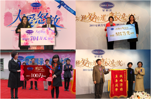 安莉芳作为国际著名内衣企业,多年来热心投身社会慈善公益事业,从坚持女性健康理念的传播,到救助危难扶持弱势的千万捐赠,再到环保智能厂区“美丽工程”的建造,安莉芳持续以实际行动来表达对社会公益的执着支持。正如安莉芳集团行政总裁兼执行董事郑碧浩女士在多次活动中表示:“弘扬女性健康慈善文化,向社会传递爱、分享美,让爱的火炬传递下去,这是一份持之以恒的美丽事业,也是安莉芳集团义不容辞的责任。”